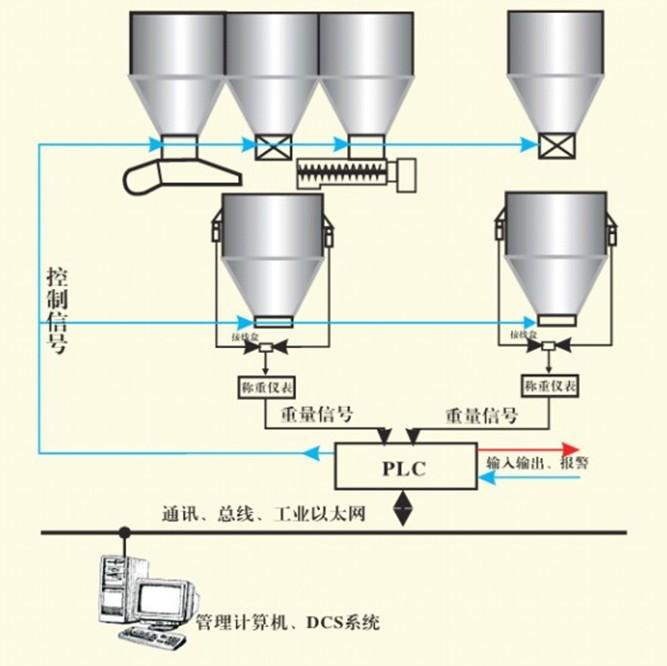 2) 配料稱重系統可同時控制多臺秤,多種不同物料或控制輸出(根據工藝而定)。
